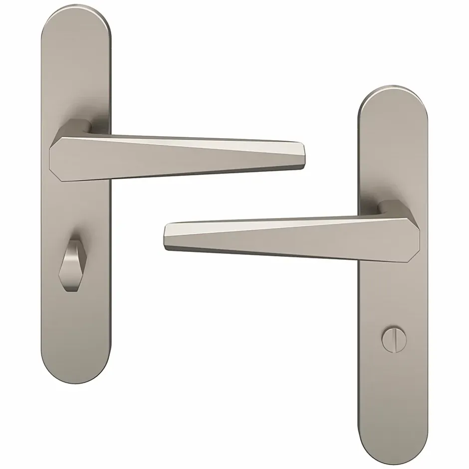 Ensemble poignée sur plaque rond à condamnation GoodHome Keri effet nickel satin gris L.140mm x l.42mm entraxe 165-195mm