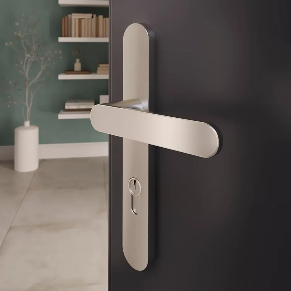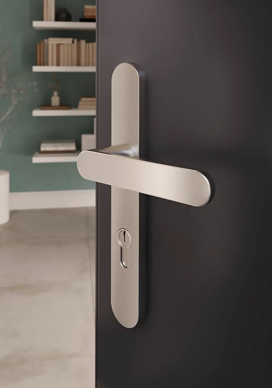 - Elle possède une largeur de plaque étroite et un col long pour une installation et une utilisation faciles sur les portes avec moulures