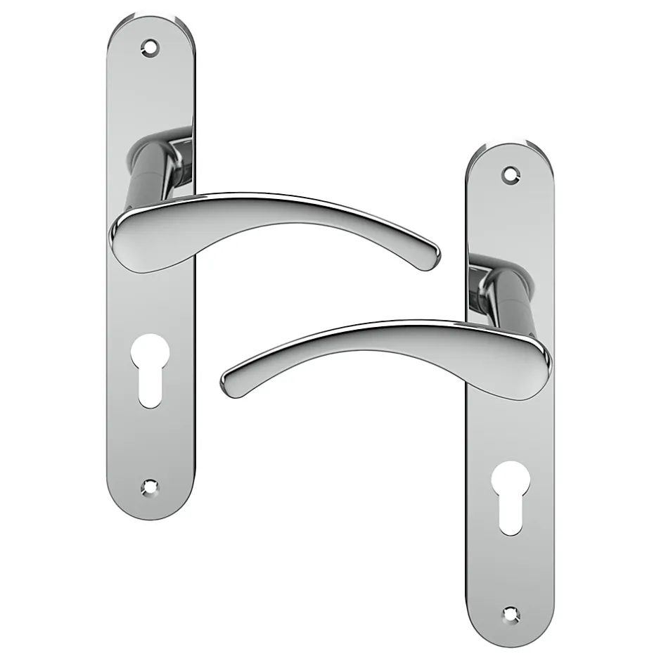 Ensemble poignée sur plaque rond GoodHome Ruis effet chromé gris L.138.5mm x l.40mm entraxe 195mm