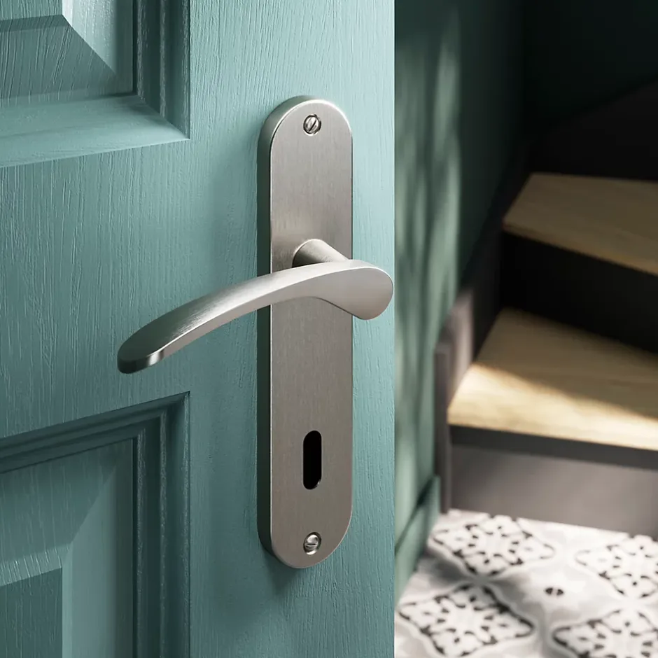 - Poignée de porte tendance sur plaque offrant une touche décorative à votre porte
