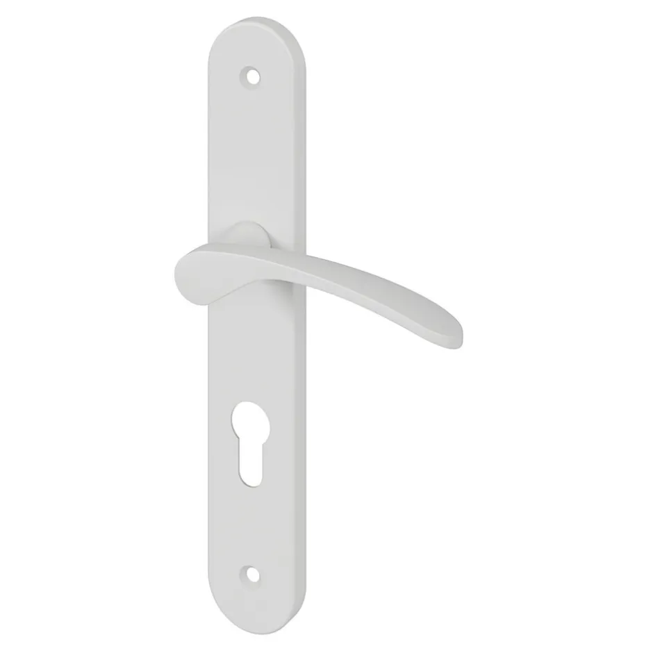 Ensemble poignée sur plaque rondcylindre GoodHome Beare mat blanc L.110.5mm x l.40mm entraxe 195mm