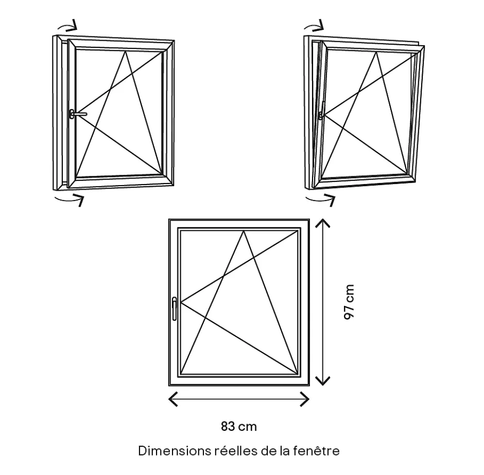 - Dimensions réelles hors tout : l.83 x h.97 cm