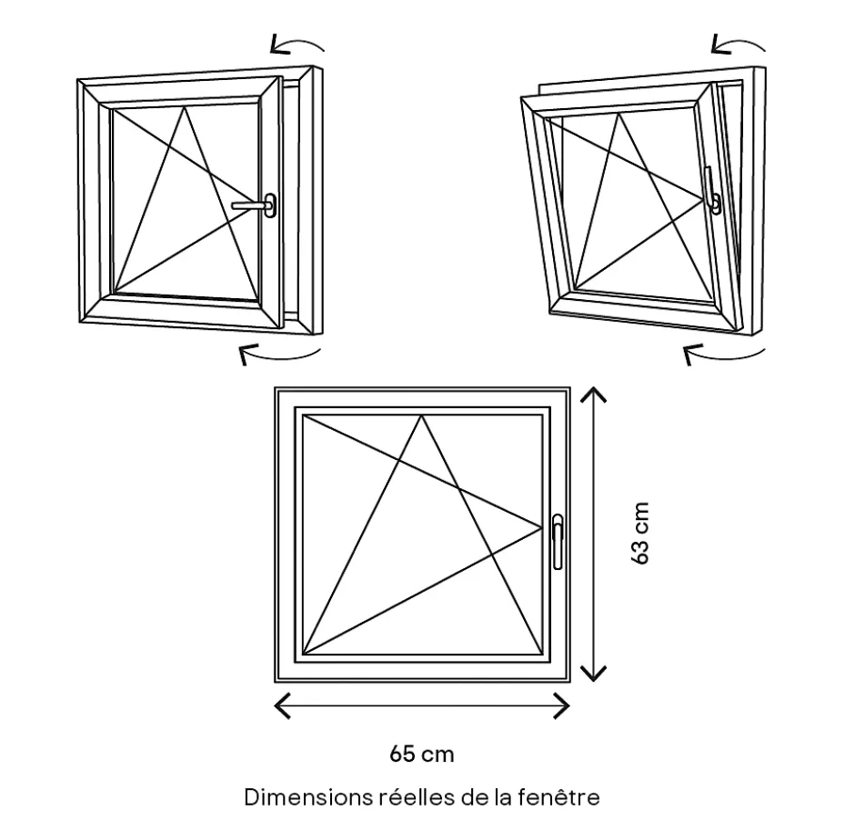 - Dimensions réelles hors tout : l.65 x h.63 cm