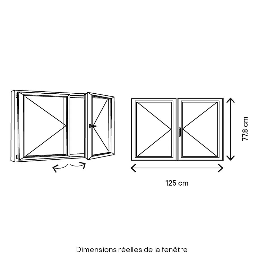 - Dimensions réelles hors tout : l.125 x h.77,8 cm
