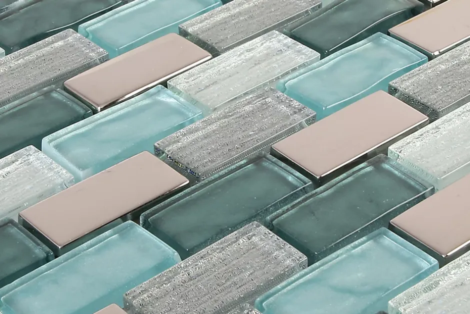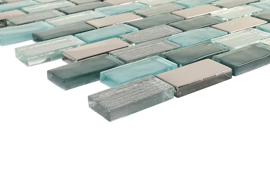 Mosaïque Timah effet verre brillant vert argent gris L. 30 x l. 30 cm x Ep. 8 mm GoodHome