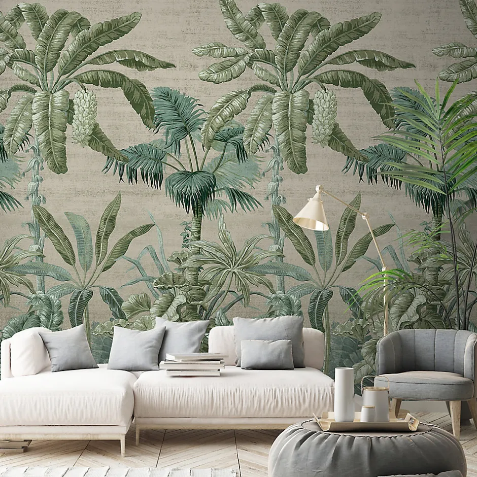 - Les papiers peints panoramiques peuvent être associés à une couleur tendance unie pour donner à l’ensemble de la pièce un sentiment de chaleur