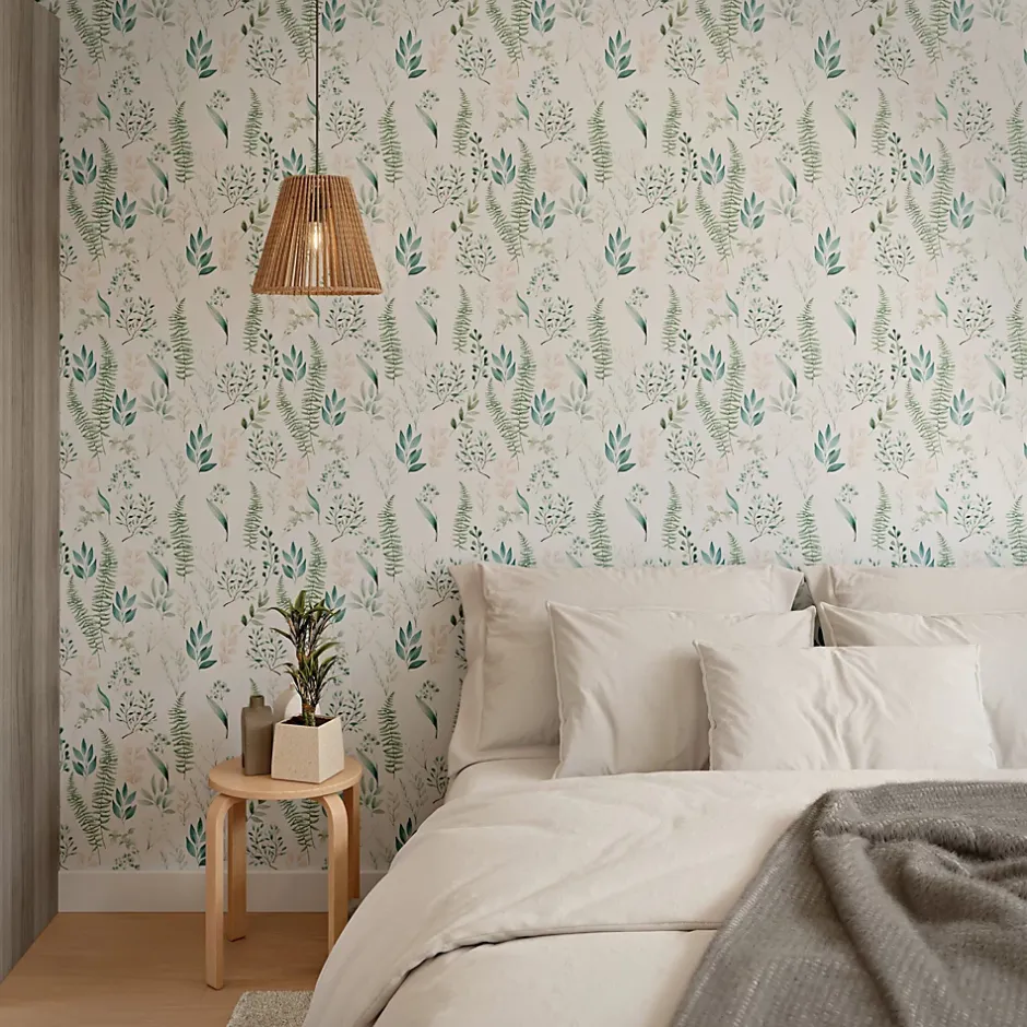 Papier peint pré-encollé vinyle intissé fleuri Easy Roll GoodHome Chandos vert l.53 x H.1005 cm