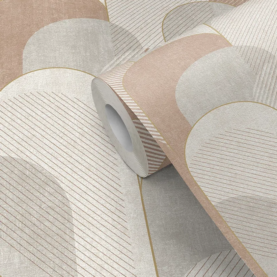 Papier peint pré-encollé vinyle intissé géométrique Easy Roll GoodHome Albury rose l.53 x H.1005 cm