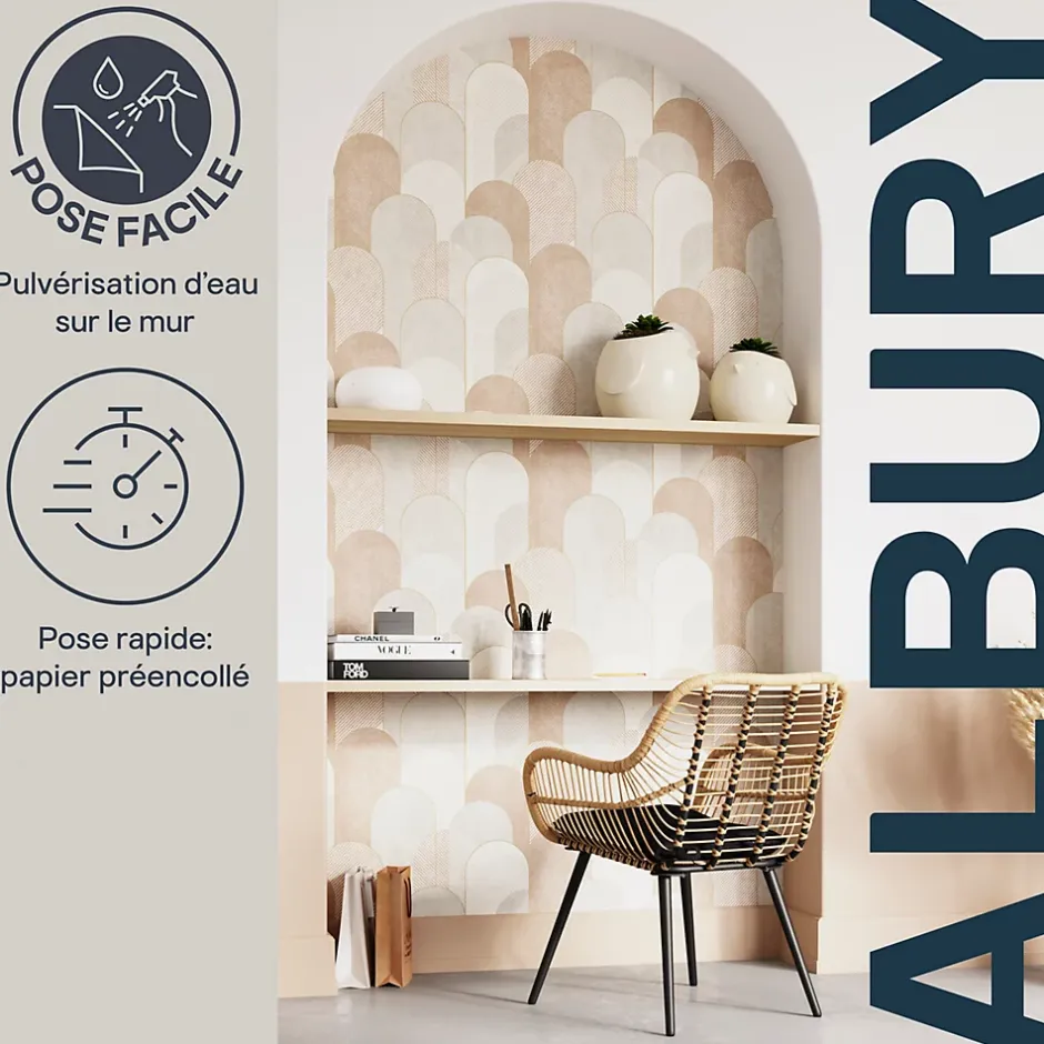 - Facile à poser : vaporisez simplement de l’eau sur le mur et appliquez directement ce papier préencollé.