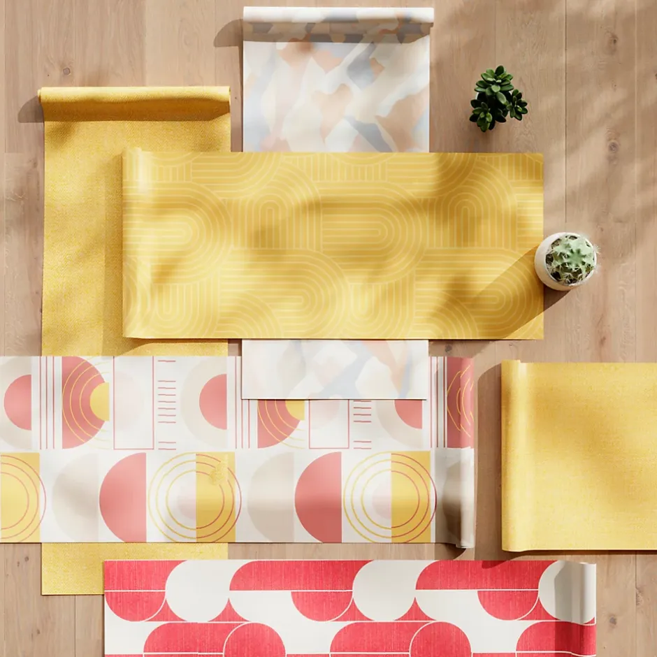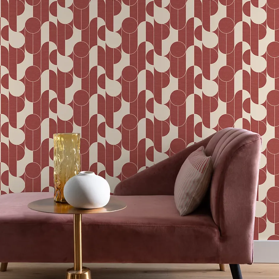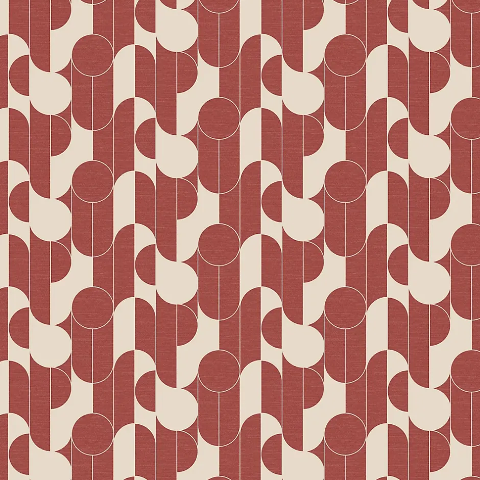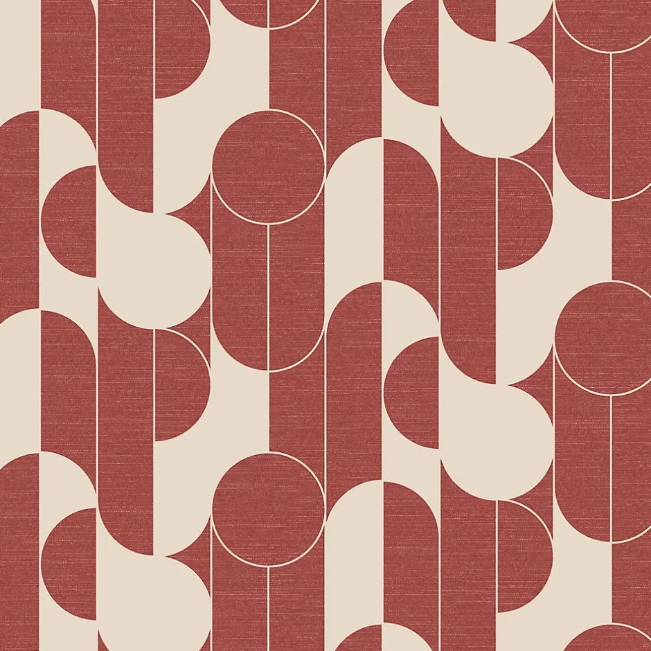 Papier peint vinyle intissé rond géométrique GoodHome terracotta et blanc L.10m x l.53cm