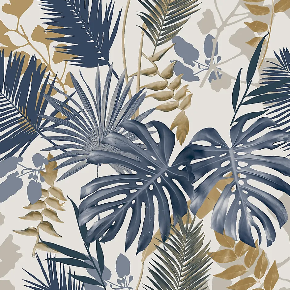 Papier peint vinyle sur intissé GoodHome Ferula bleu 53 cm