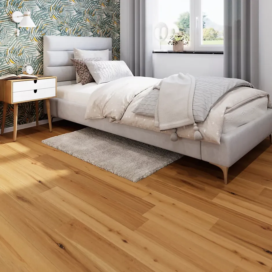 - Ce parquet est idéal pour une utilisation dans les couloirs, les espaces de vie et les chambres