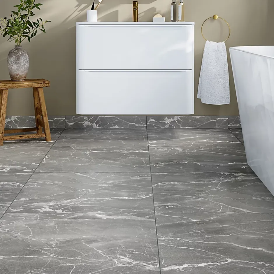 Plinthe en carrelage effet marbre gris brillant L.60 x l.7,5 x ép.8,5 mm – lot de 4, GoodHome Aruma