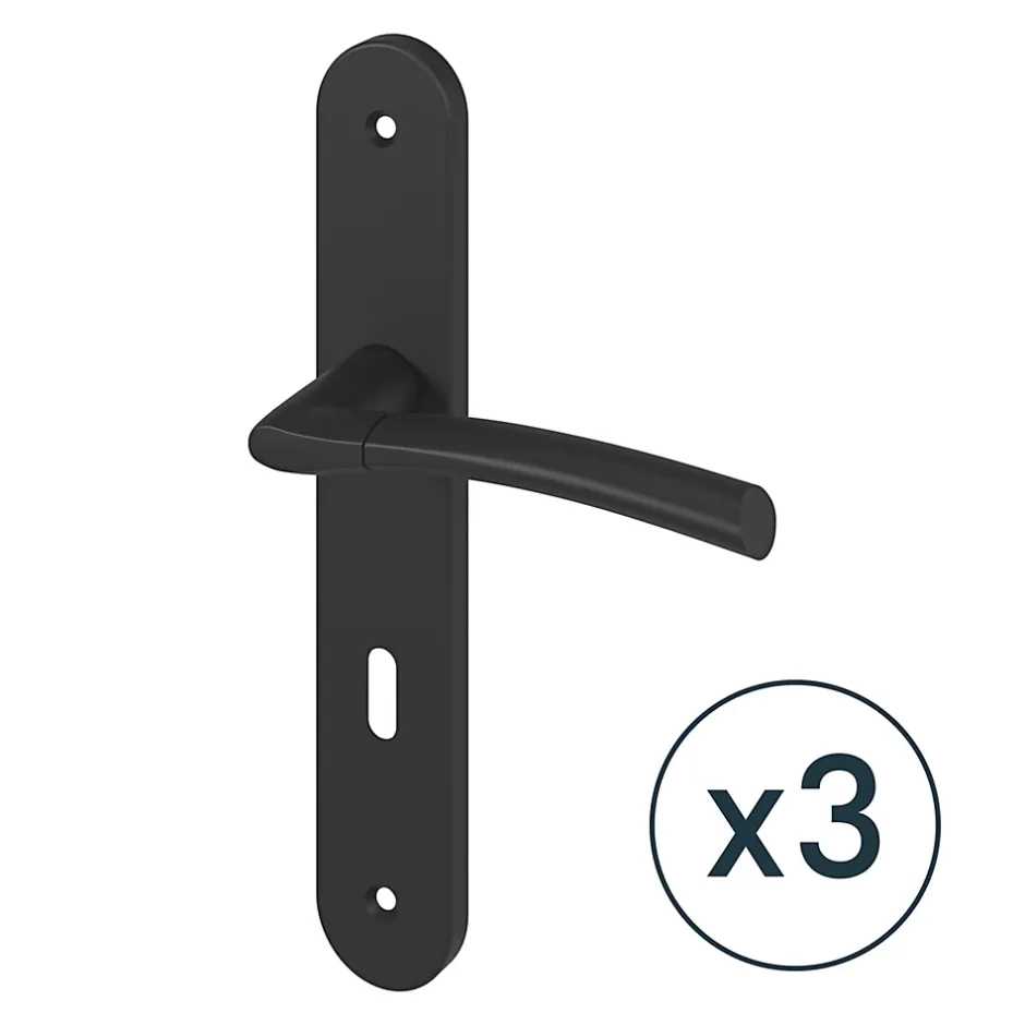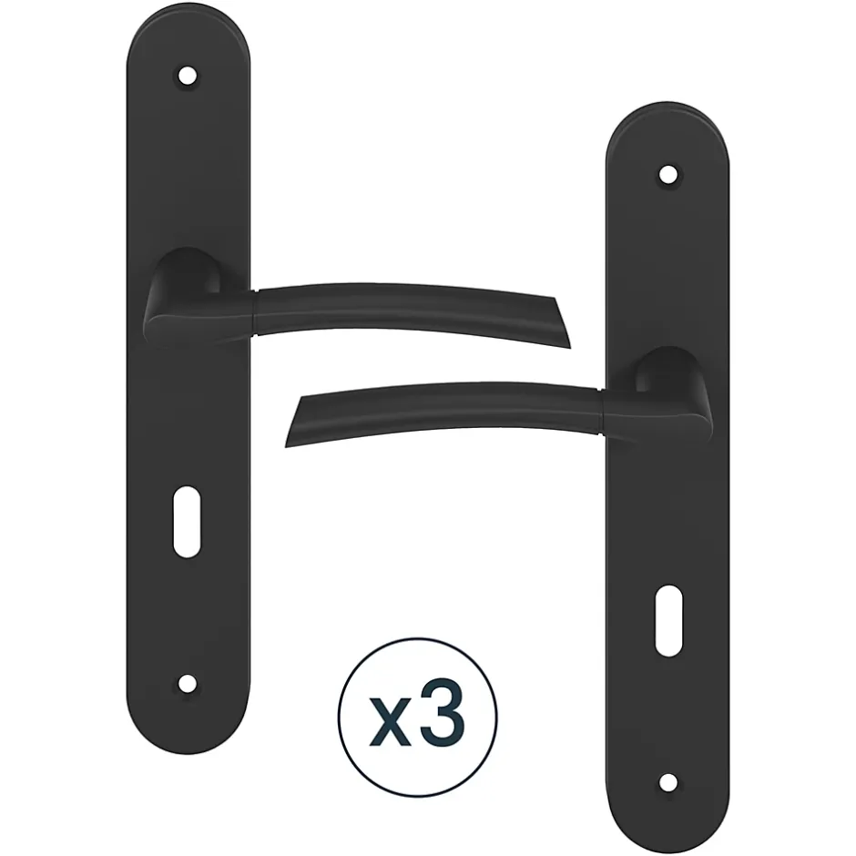 Lot de 3 poignées sur plaque avec serrure, noir mat, L.128mm x l.40mm, entraxe 195mm, GoodHome Hirel