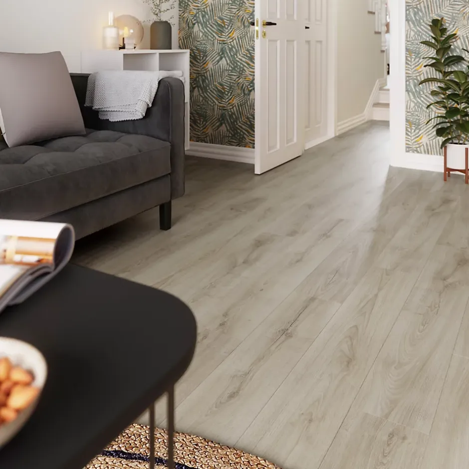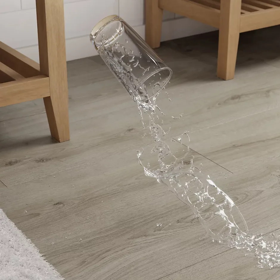 - Ce stratifié est résistant à l’eau et convient donc à toutes les pièces de votre maison, y compris la salle de bain et la cuisine.