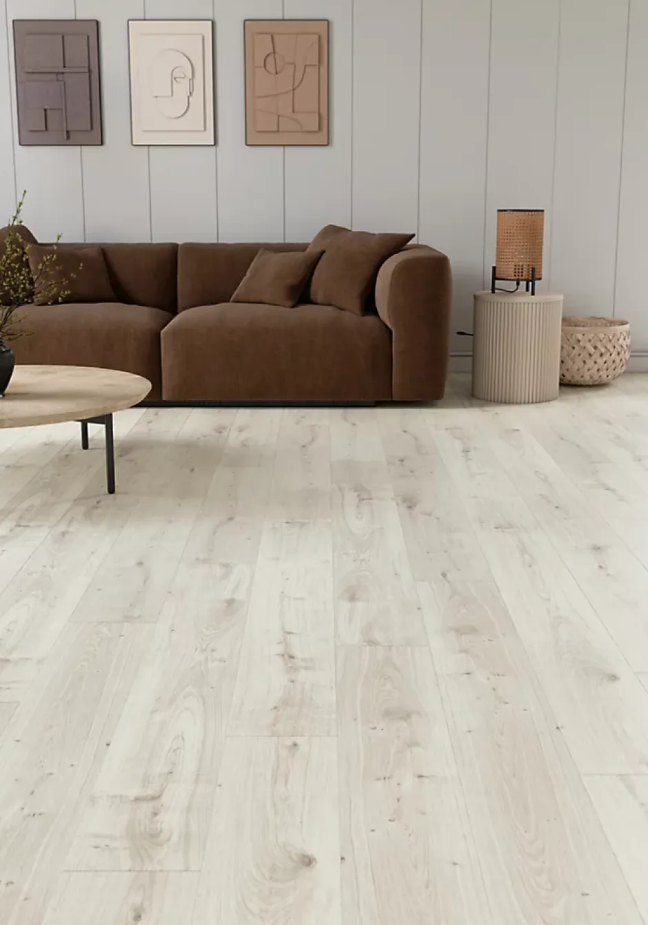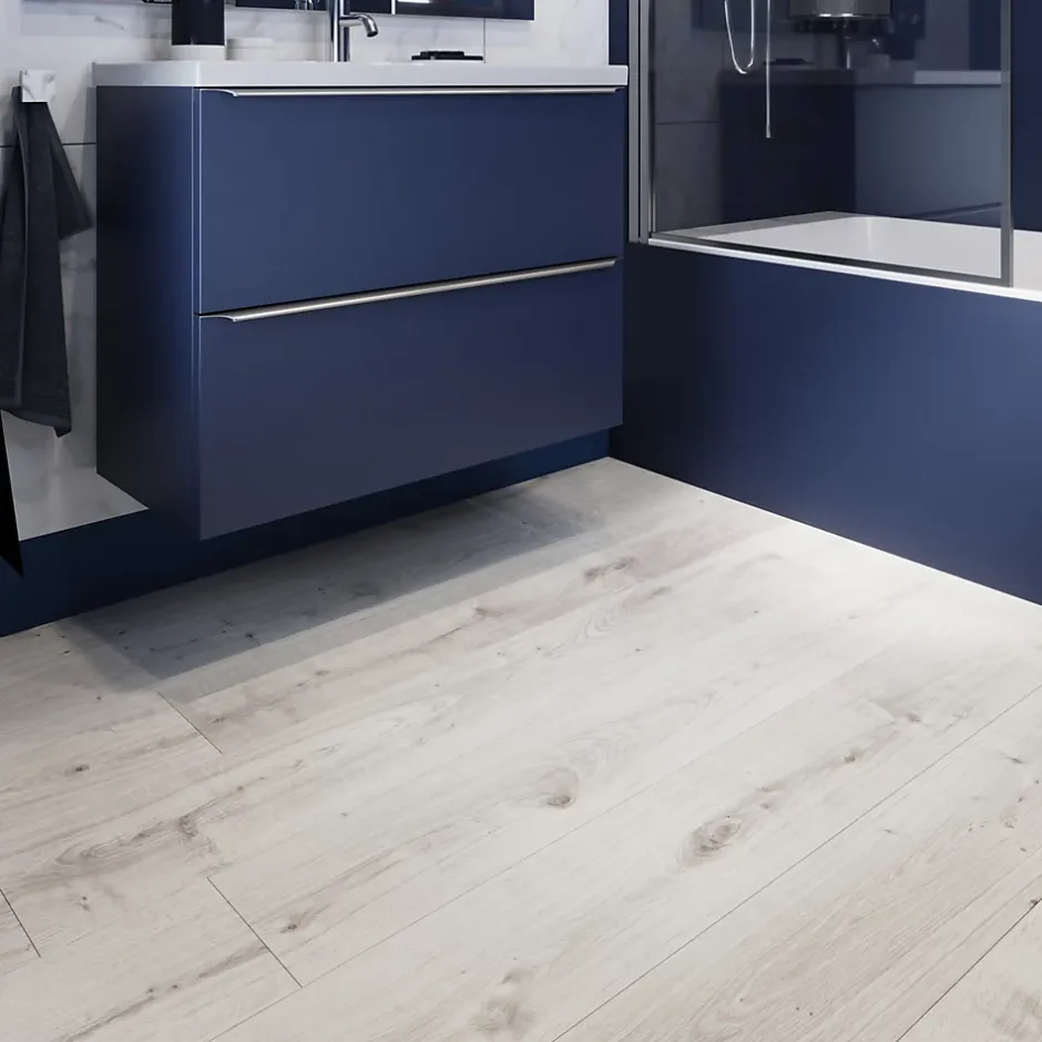 Sol stratifié Rowley GoodHome, passage élevé AC4, effet chêne blanchi, L.129,2 cm x l.19,3 cm x ép.8 mm, résistant à l’eau