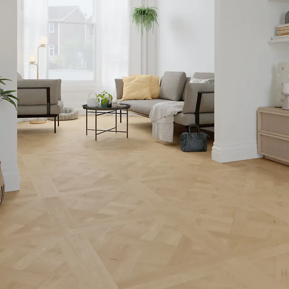 Sol stratifié Turnbull GoodHome, passage intense AC5, effet chêne blond, L.120 cm x l.60 cm x ép.10 mm, résistant à l’eau