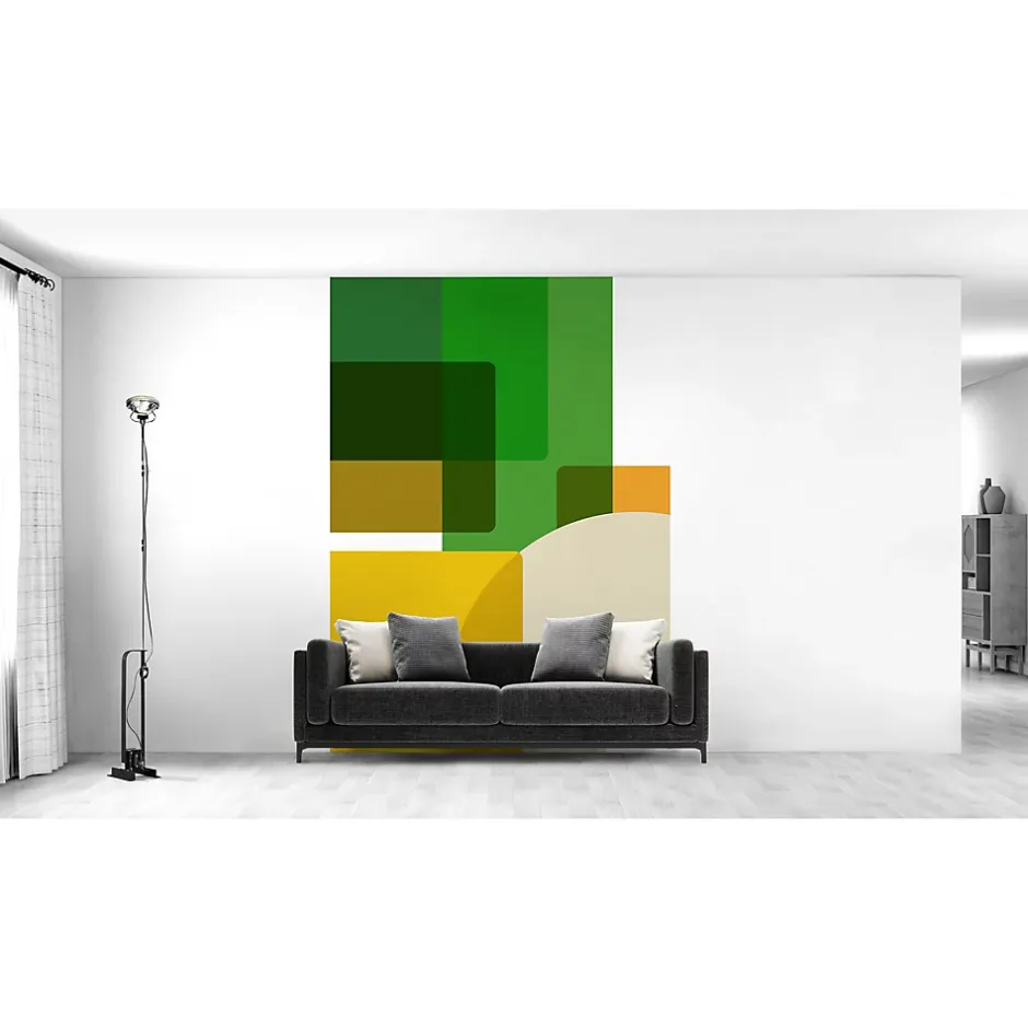 Papier peint panoramique intissé géométrique superposé, vert, jaune, marron, 4 lés, L.280 x l.200cm IDPanneaux