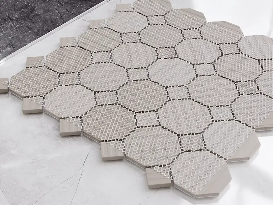 Mosaïque en céramique.Idéal pour une installation murale dans les espaces intérieurs de la maison, mais également excellent pour créer des bandes et/ou des inserts décoratifs car il est facile à couper grâce au maillage. Il s’adapte à toutes les surfaces, droites ou ondulées, également idéal pour les sols. La mosaïque est livrée sur un filet en cellulose ou sur un filet éco-plastique.Spécifications techniques :- Choix : I- Certification : ISO 9001:2015, certificats d’hygiène et déclarations CE – le produit est conforme aux exigences sanitaires, également en termes d’utilisation dans un restaurant, dans un hall ou dans d’autres espaces publics.- Antidérapant : non- Type de matériau : céramique (la découpe de la céramique est autorisée avec une lame diamantée.)- Dimensions de la plaque : 29.3cm x 29.3cm- Taille de la carte: 5.6cm x 5.6cm/2.2cm x 2.2cm- Épaisseur: 5mm- Quantité au m² : 12- Résistant à l’eau- Résistant à la chaleur (convient aux saunas, aux spas et à l’installation à proximité de sources de chaleur, par exemple des poêles)Méthode d’installation :- Utilisez votre adhésif de montage spécifique préféré.- Appliquer le mastic époxy.- Laver l’excédent de mastic époxy avec une éponge douce et de l’eau.Traitement:La mosaïque en céramique est facile à nettoyer et à entretenir, ne nécessitant qu’un nettoyage régulier avec des détergents doux. Cette caractéristique le rend idéal pour les environnements sujets à la saleté et aux taches, garantissant toujours une apparence fraîche et propre. Pour conserver la couleur dans le temps, il est important d’éviter l’utilisation de produits abrasifs ou agressifs. Ne pas frotter ni gratter.