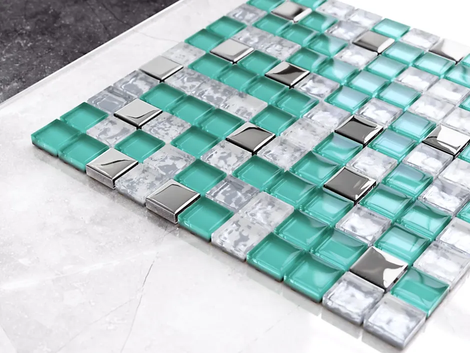 En verre. Idéal pour une installation murale à l’intérieur, mais aussi excellent pour créer des bandes décoratives et/ou des inserts car il est facile à couper – Il s’adapte à toutes les surfaces, droites et ondulées, également idéal pour les sols. La finition de surface permet un nettoyage facile – L’épaisseur de 8 mm est particulièrement adaptée à la pose en combinaison avec la plupart des carreaux. Taille de la plaque : 30 x 30 cm ; Nombre de plaques par 1m2 : 11 ; 1 plaque de poids (en kg) : 1,4Kg ; Pays de fabrication : Pologne ; Certification : ISO 9001:2015. 1. Résistant aux hautes températures et aux rayures ; 2. Idéal comme doublure de bain ou de douche; 3. Le verre de notre mosaïque a subi un traitement thermique breveté ; 4. Facile à découper grâce à la maille éco-plastique.