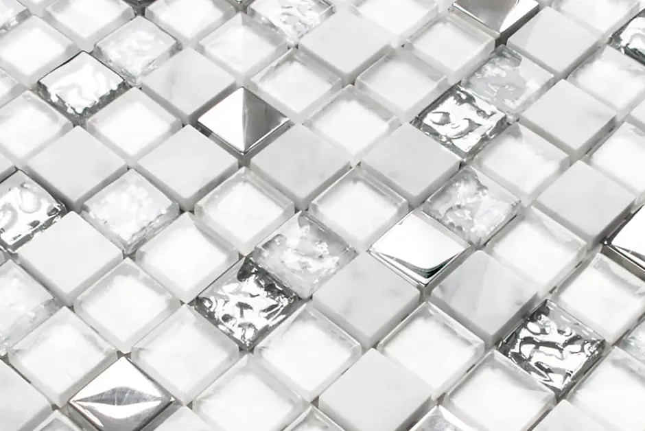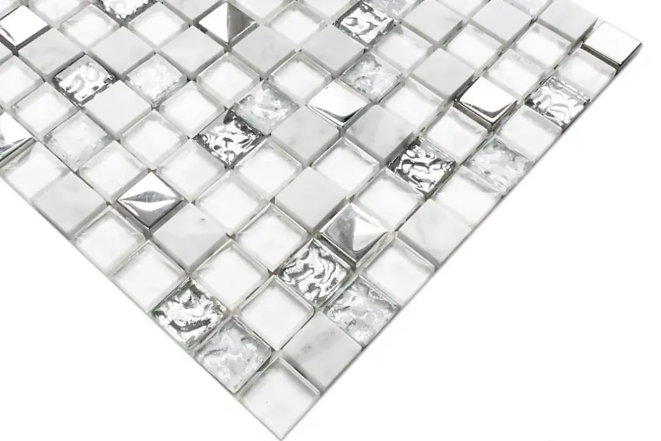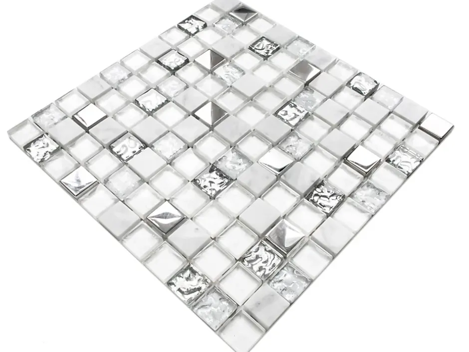 En verre et pierre naturelle. Idéal pour une installation murale à l’intérieur, mais aussi excellent pour créer des bandes décoratives et/ou des inserts car il est facile à couper – Il s’adapte à toutes les surfaces, droites et ondulées, également idéal pour les sols. La finition de surface permet un nettoyage facile – L’épaisseur de 8 mm est particulièrement adaptée à la pose en combinaison avec la plupart des carreaux.Taille de la plaque : 30 x 30 cm ;Nombre de plaques par 1m2 : 11 ;1 plaque de poids (en kg) : 1,4Kg ;Pays de fabrication : Pologne ;Certification : ISO 9001:2015.1. Résistant aux hautes températures et aux rayures ; 2. Idéal comme doublure de bain ou de douche; 3. Facile à découper grâce à la maille éco-plastique.