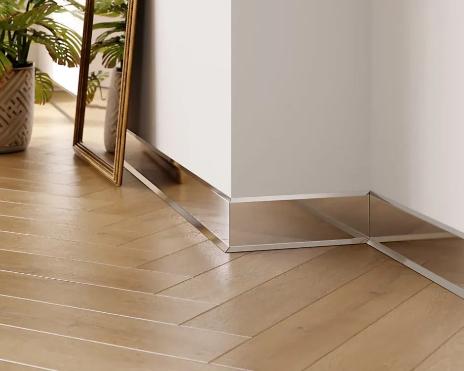 Armature F en acier inoxydable. Caractéristiques : Hauteur de la plinthe : 6cm, 8cm et 10cm;Longueur : 270cm;Épaisseur acier 0,6 mm;Matériau : acier inoxydable coloré PVD;Application : mur (plinto de plancher);Découpe sur mesure : possible en utilisant une meuleuse d’angle ou une cisaille pour métaux.-acier inoxydable SUS 304; -épaisseur 0,6 mm;-précision dimensionnelle grâce à l’utilisation de la découpe laser;-couleur durable, résistant à la lumière et non abrasif obtenu dans le processus de coloration; -haute résistance thermique;-résistance aux produits chimiques domestiques.Pour que nos plinthes en acier restent toujours éclatantes, suivez ces étapes simples de nettoyage :Chiffon en microfibre et eau : Utilisez un chiffon doux en microfibre et de l’eau simple pour enlever la saleté et les empreintes. Cette méthode est efficace et n’endommage pas les surfaces brillantes.Détergents spécifiques : Si vous préférez utiliser un produit spécifique, vous pouvez acheter des détergents spécialement formulés pour nettoyer l’acier inoxydable. Assurez-vous de suivre attentivement les instructions du fabricant.Évitez les produits agressifs : N’utilisez jamais de produits chimiques abrasifs tels que des « CIF » ou des paillettes, car ils pourraient rendre la surface de la décoration opaque. Nos profilés ont une résistance chimique élevée, mais sont sensibles aux rayures.Choisissez le bas-fonds F pour une finition impeccable et une installation parfaite, combinable avec la série : F, puis avec les accessoires : FLI, FL et FI.Combinable avec toute la gamme de nos profils Ilcom.