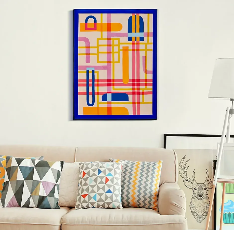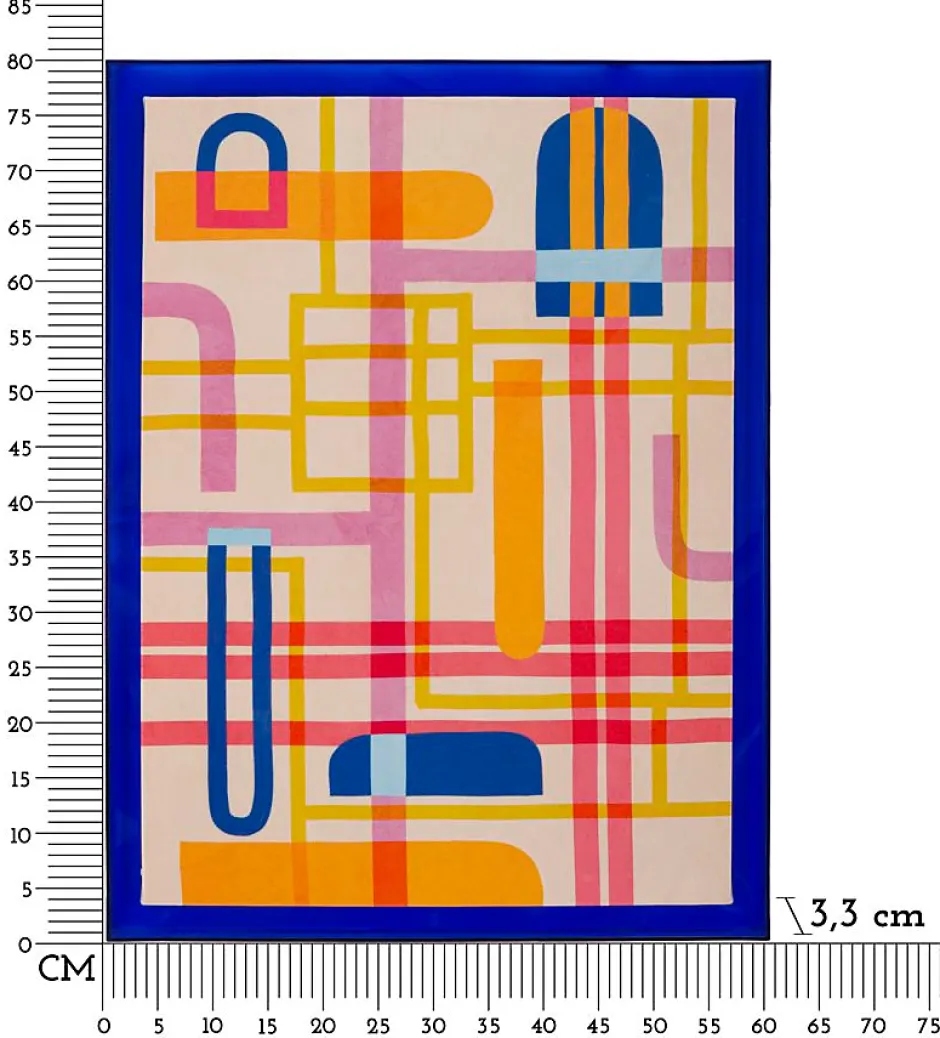 Impression sur toile encadrée en plexiglas, au motif abstrait et dynamique, conçue pour ceux qui recherchent une décoration originale et dynamique. Les couleurs vibrantes et les lignes entrelacées apportent énergie et style à tout espace, le rendant unique et créatif. Dimensions : 60 x 80 x 3,3 cm.