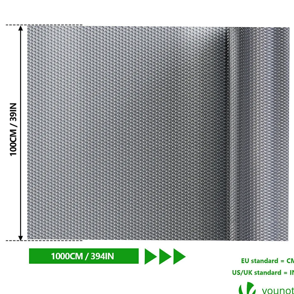 LES + PRODUITS Film aluminisé ultra reflétant Isolation a bulle thermique efficace Facile et Pratique à utiliser Utilisation multiplesDESCRIPTION Notre film d’isolation thermique performant contre le chaud et le froid est fabriqué en film d’aluminium à bulle double couche de qualité qui permet un reflètement optimal de la chaleur et une isolation efficace contre le froid. En été, notre isolant thermique à bulles double couche réfléchit le soleil et isole les pièces de la chaleur grâce à ses trous d’air à faible émissivité pour maximiser les capacités thermiques. En hiver, le film d’aluminium réfléchissant combiné avec des noyaux à bulles peut refléter jusqu’à 96 % de la chaleur pour garder votre pièce au chaud et sa capacité d’isolation permet également de maintenir le froid à l’extérieur et de minimiser les pertes de chaleur. Notre isolant thermique s’adapte à toutes les tailles de radiateur, portes, fenêtre, toit. Il suffit de couper le film à la taille désirée avec un ciseau. De plus grâce à son faible poids, il peut être facilement accroché avec un ruban adhésif ou agrafé. Notre film isolant a une gamme d’utilisation large et peut être utilisé en tant que réflecteur de radiateur, isolant pour chauffe-eau, porte de garage ou encore poulailler et toits mais aussi comme un film de protection pour les expéditions de produits sensibles à la chaleur comme les chocolats et fleurs.CARACTÉRISTIQUE Épaisseur: 3mm Taille : 1x10m Couleur: Argenté Matériau : Film isolant en film aluminisé à double couche
