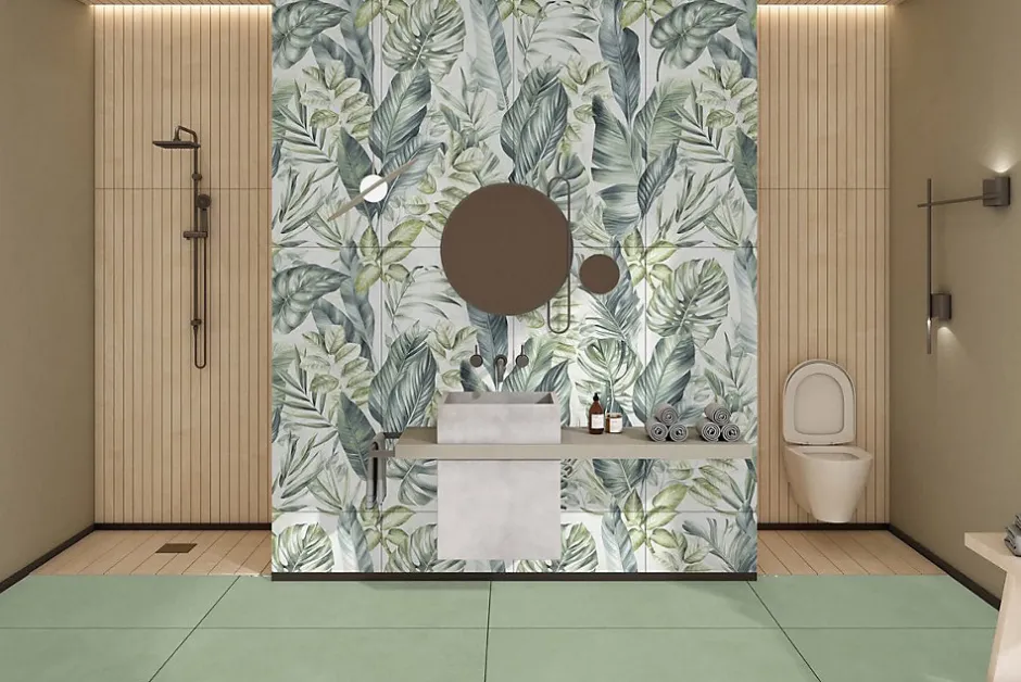 Apportez une touche d’évasion et de fraîcheur à votre intérieur avec le carrelage mural « Jungle Vert », un décor botanique élégant et raffiné. Ses grandes feuilles aux nuances de vert et de gris créent une ambiance naturelle, idéale pour une salle de bain, une cuisine ou un mur d’accent dans un séjour.