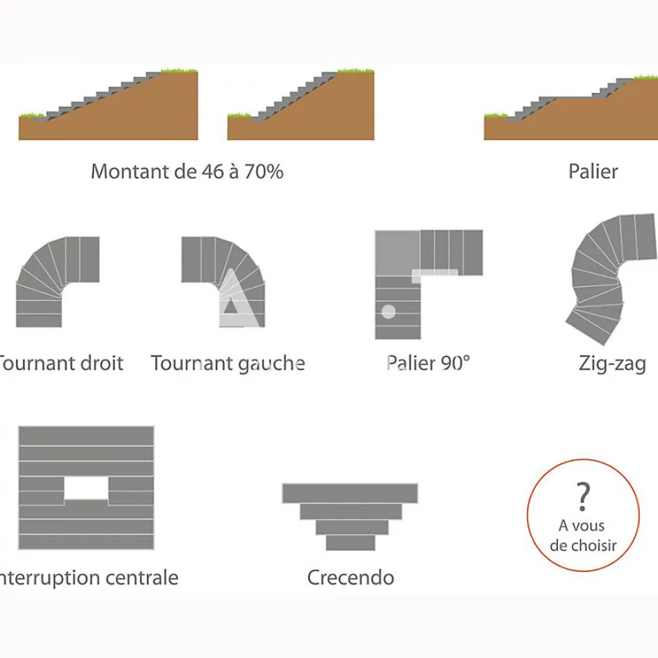 - Adaptabilité au terrain : Le système Modulesca s’ajuste à diverses configurations de terrain, permettant la création d’escaliers personnalisés selon vos besoins.