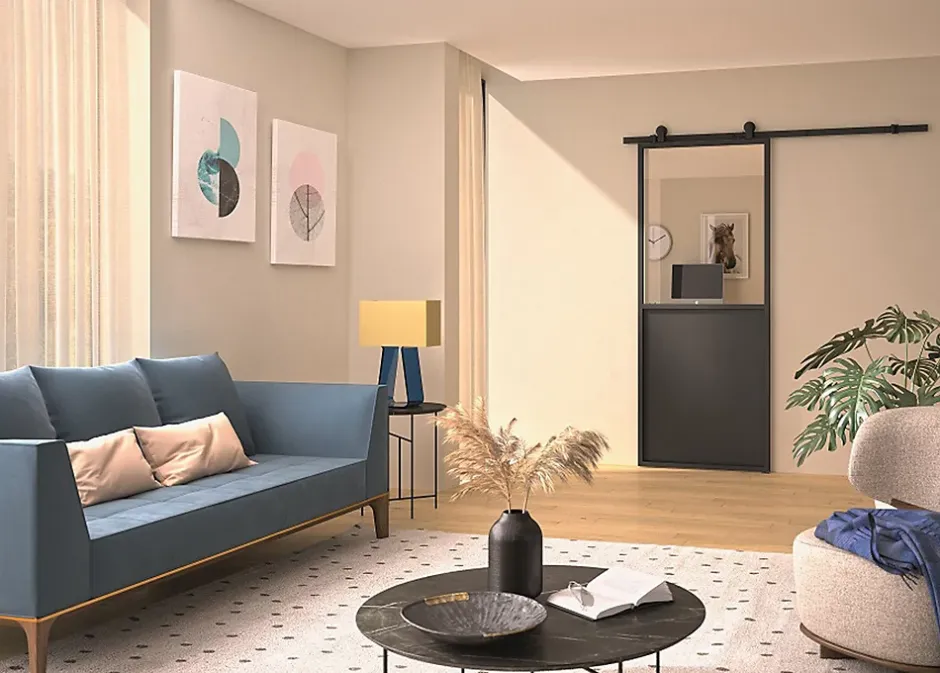 Bloc Porte Telia Noir 4 Panneaux H204 X L83 Côte Tableau P.gauche,poignee-Gd Menuiseries New