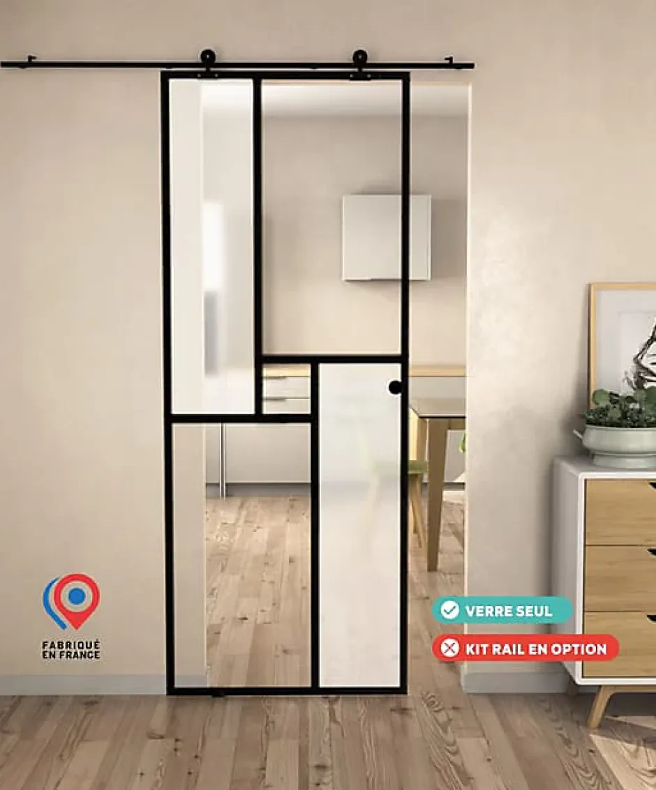 DESCRIPTIONPorte intérieure en verre décoratif émaillé, style moderne.Largeur 72,5 cm × Hauteur 200 cm × Épaisseur 8 mm.Kit rail coulissant inclus.✨ AVANTAGES • Verre émaillé trempé (EN 12150) • Laisse passer la lumière • Gain de place • Bords polis – joint plat • Montage simple • Nettoyage facile CARACTÉRISTIQUES • Verre clair 8 mm émaillé et trempé • 4 perçages Ø10,5 mm en partie haute • Coulissement à chariot apparent – inox noir mat • Poignées coquille ×2 + guide bas intégrés • Dimensions : 72,5 × 200 × 0,8 cm ENVIRONNEMENT• Fabrication locale à Carentan (Normandie) – verre & aluminium recyclables VERRE ÉMAILLÉ• Émail vitrifié durable• Haute résistance en milieu humide• Très bonne diffusion lumineuse, anti-rayures, anti-traces ENTRETIEN• Nettoyage classique non abrasif• Éviter produits gras ou acétiques⚙️ KIT RAIL FOURNI • Rail aluminium 2 m – robuste, léger • Frein des deux côtés • Guide bas + visserie inclus TRANSPORT • Livraison au pied d’immeuble / pas de porte • Option étage : 120 € TTC (sur demande) • Prise de RDV par SMS / appel – transporteur SANIDIS⚠️ RÉCEPTION • Vérifier l’état du colis • Inscrire les réserves si nécessaire • Refuser le colis en cas de dommage Assistance : [email protected] – Transporteur : +33 1 60 93 99 10