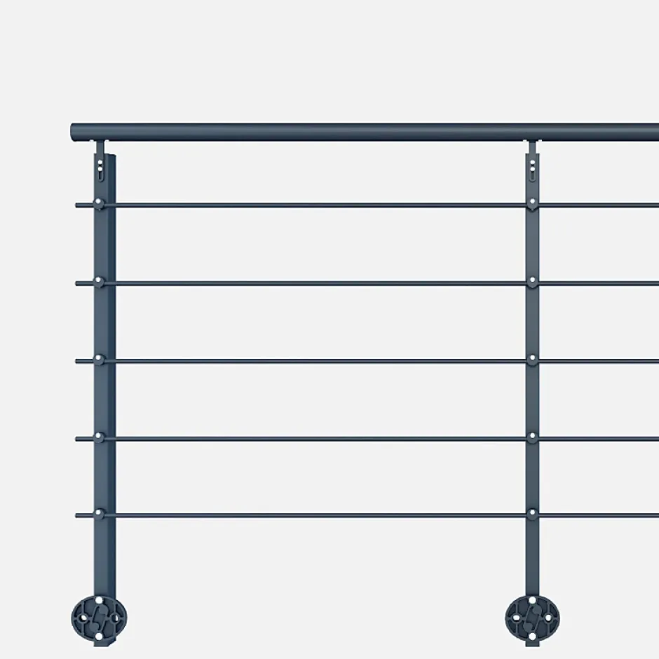 Le garde-corps INITIO, fixation latérale, coloris gris anthracite est une solution prêt-à-poser au meilleur rapport qualité/prix. Son design minimaliste marie des poteaux aux lignes marquées de forme rectangulaire et une main courante ergonomique. Ce garde-corps assure la sécurité de vos espaces intérieurs ou extérieurs, tels que mezzanines, terrasses, balcons ou étages. INITIO arbore un coloris gris anthracite (RAL 7016). Sa main courante en aluminium (intérieur, extérieur) s’harmonise avec le style de votre aménagement.Ce kit permet d’installer 2 mètres linéaires de garde-corps sur surface plane. Non compatible escalier.Il est possible de combiner plusieurs kits ensemble. Pour finaliser votre installation, un poteau de finition supplémentaire est à prévoir.Dimensions : Dimensions kit complet : 77.5 x 1149.20 x 2000 mm Dimensions poteau : 77.5 x 110 x 1109.2 mm Dimensions tubes : 10 x 10 x 2000 mm Dimensions main courante : 40 x 40 x 2000 mm Composition du kit : 2 poteaux rectangulaires en aluminium avec platines de fixation intégrées 1 main courante 2m en aluminium 5 tubes de remplissage en aluminium + 5 assembleurs + 10 capuchons de finition 2 goupilles élastiquesAccessoires complémentaires : Prévoyez un poteau de finition Ajoutez des panneaux de protection pour garantir la conformité à la norme Pour les angles, des kits spécifiques sont nécessaires La visserie de fixation au sol (chevilles, tirefonds, etc.) n’est pas incluse et doit être sélectionnée en fonction de la nature de votre solConformité aux normes :Pour assurer la conformité aux normes de sécurité NF P 01-012 et NF P 01-013, il convient d’ajouter des panneaux de protection transparents à votre ouvrage si la hauteur de chute est supérieure à 1m. Ce n’est pas obligatoire pour les montées d’escalier. L’entraxe poteaux de ne doit pas dépasser 1000 mm.