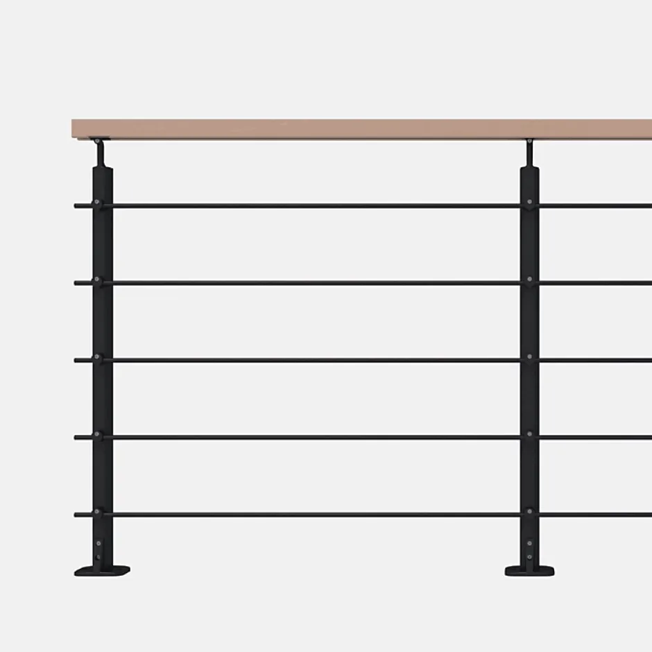 Le garde-corps Opalu est une solution prêt-à-poser, simple à installer, avec un design épuré. Ce garde-corps allie un aluminium noir profond (RAL 9005) à une main courante en hêtre, conçu pour une fixation à plat en intérieur uniquement. Cette rambarde permet d’assurer la sécurité de votre mezzanine, terrasse, balcon, escalier, étage… Opalu est disponible en 3 coloris avec 3 options de mains courantes différentes (bois/aluminium) et en fixation à plat ou latérale.Ce kit permet d’installer 2 mètres linéaires de balustrade. Il est possible d’assembler plusieurs kits ensemble. Chaque élément est recoupable avec une scie à métaux pour s’adapter aux longueurs souhaitées. Pour finir votre ouvrage, un poteau supplémentaire de finition est à prévoir en supplément. Nous estimons le temps de pose à environ 45min – 1h par mètre linéaire (+15min par mètre linéaire s’il y a un panneau de protection). Dimensions : Dimensions kit complet : 78 x 1004 x 2000 mmDimensions poteau : 75 x 110 x 975 mmDimensions tubes : 10 x 10 x 2000 mmDimensions main courante : 40 x 40 x 2000 mm Composition du kit : 2 poteaux en aluminium avec platines de fixation intégrées 1 main courante 2 mètres en hêtre 5 tubes de remplissage en aluminium + 5 assembleurs + 10 capuchons de finition 2 goupilles élastiquesAccessoires complémentaires : Prévoir 1 poteau de finition Panneaux de protection pour la mise en conformité à la norme de sécurité Pour les éventuels angles, prévoir des kits d’angle Visserie de fixation au sol non fournie (chevilles, tirefonds,…), à choisir selon la nature de votre solConformité aux normes :Pour assurer la conformité aux normes de sécurité NF P 01-012 et NF P 01-013, il convient d’ajouter des panneaux de protection transparents à votre ouvrage si la hauteur de chute est supérieure à 1m. Ce n’est pas obligatoire pour les montées d’escalier. L’entraxe poteaux de ne doit pas dépasser 1000 mm.