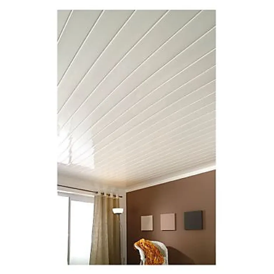 Lambris en PVC blanc brillant pour plafonds : 3 lames par botte.