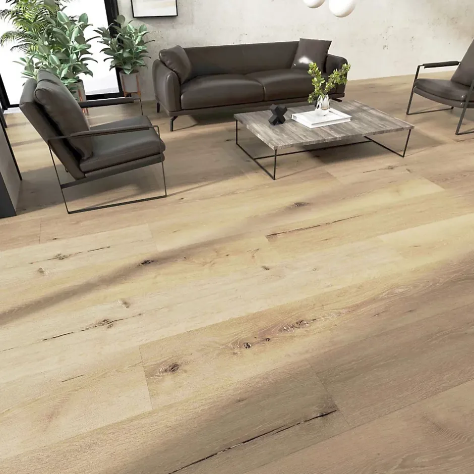 Le sol PVC rigide à clipser SPC 18,4×122 cm ESSENTIEL MIEL avec sous-couche intégrée est un revêtement qui allie esthétique et confort. Sa teinte miel chaude et lumineuse imite parfaitement l’aspect du bois naturel, apportant une ambiance chaleureuse et accueillante à vos espaces de vie. Grâce à son système de clips, ce sol est facile à poser, offrant ainsi une solution rapide et pratique pour ceux qui souhaitent moderniser leur intérieur.La sous-couche intégrée assure un confort optimal en améliorant l’isolation phonique et thermique de vos pièces, tout en offrant une surface agréable sous les pieds. Ce sol est résistant à l’eau, ce qui le rend idéal pour les salles de bain, les cuisines ou les pièces à fort passage comme le salon. Sa finition mate et texturée lui donne un aspect naturel et raffiné, tout en étant facile à entretenir et durable.Côté décoration, le ESSENTIEL MIEL s’accorde parfaitement avec des meubles en bois naturel ou en métal, créant un joli contraste entre la chaleur du sol et la modernité des meubles. Il peut être associé à des textiles doux et légers comme des tapis en laine ou des rideaux en lin, pour un effet cosy et convivial. Que vous souhaitiez créer un espace scandinave, contemporain ou même industriel, ce sol PVC est un excellent choix pour apporter luminosité et chaleur à vos pièces. Il est à la fois durable, facile à entretenir et offre un confort quotidien inégalé grâce à sa sous-couche intégrée.