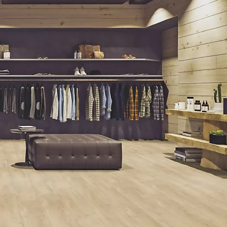 Creation 55 à coller Gerflor est un revêtement de sol PVC en lames classé U3P3. Idéal pour les zones à trafic modéré (bureaux, hôtellerie, habitat…). Fabriqué en France. Leur résistance est certifiée par le classement QB-UPEC U3P3E3C2. Ils sont particulièrement adaptés à un usage professionnel en locaux soumis à un trafic modéré (bureau, hotellerie, habitat…) entièrement recyclables, ils contiennent jusqu’à 55% de composants recyclés Résistant à l’humidité, convient aux pièces d’eau : salle de bain et cuisine. • Chanfrein : Oui, sur les 4 côtés • Chauffage par le sol : Oui • Classe COV : A+ • Classe Formaldéhyde : E1 • Classement Européen : 33-42 • Classement feu : Bfl-s1 (ancienne norme M3) • Comportement électrostatique : 2kV • Conductivité thermique : 0,25 W/mK • Epaisseur couche d’usure : 0,55 mm • Epaisseur matière : 2,5 mm • Garantie 15 ans en usage résidentiel • Groupe d’abrasion : T • Isolation phonique : 4 dB • Largeur d’une lame : 18,415 cm • Longueur d’une lame : 121,92 cm • Nombre de lames par paquet : 15 • Poids d’un paquet : 12,7 kg • Poids total : 3850 g/m² • Pose : Collée • Résistance à l’usure : ± 2.0 mm³ (EN 660.2) • Résistance au glissement : R10 • Résistance au poinçonnement : 0,10 mm • Résistance aux chaises à roulettes : Oui (type H) • Résistance chimique : Bonne • Solidité à la lumière : 6 • Sonorité à la marche : 77 dB • Sous-couche : Intégrée • Stabilité dimensionnelle : 0,15% • Surface par paquet : 3,367m² • Traitement de surface : ProtechShield
