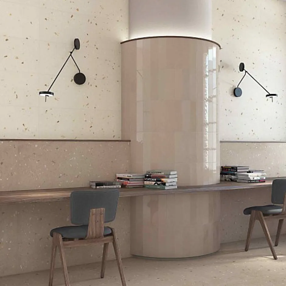 Ces carreaux effet terrazzo reproduisent l’aspect moucheté des sols en pierre et marbre d’autrefois. Leur style sobre et naturel s’accorde facilement avec tous types d’intérieurs, que ce soit dans une cuisine, une salle de bain ou une pièce à vivre.Il est conseillé de prévoir environ 10 % de carreaux supplémentaires pour les coupes et les ajustements lors de la pose.