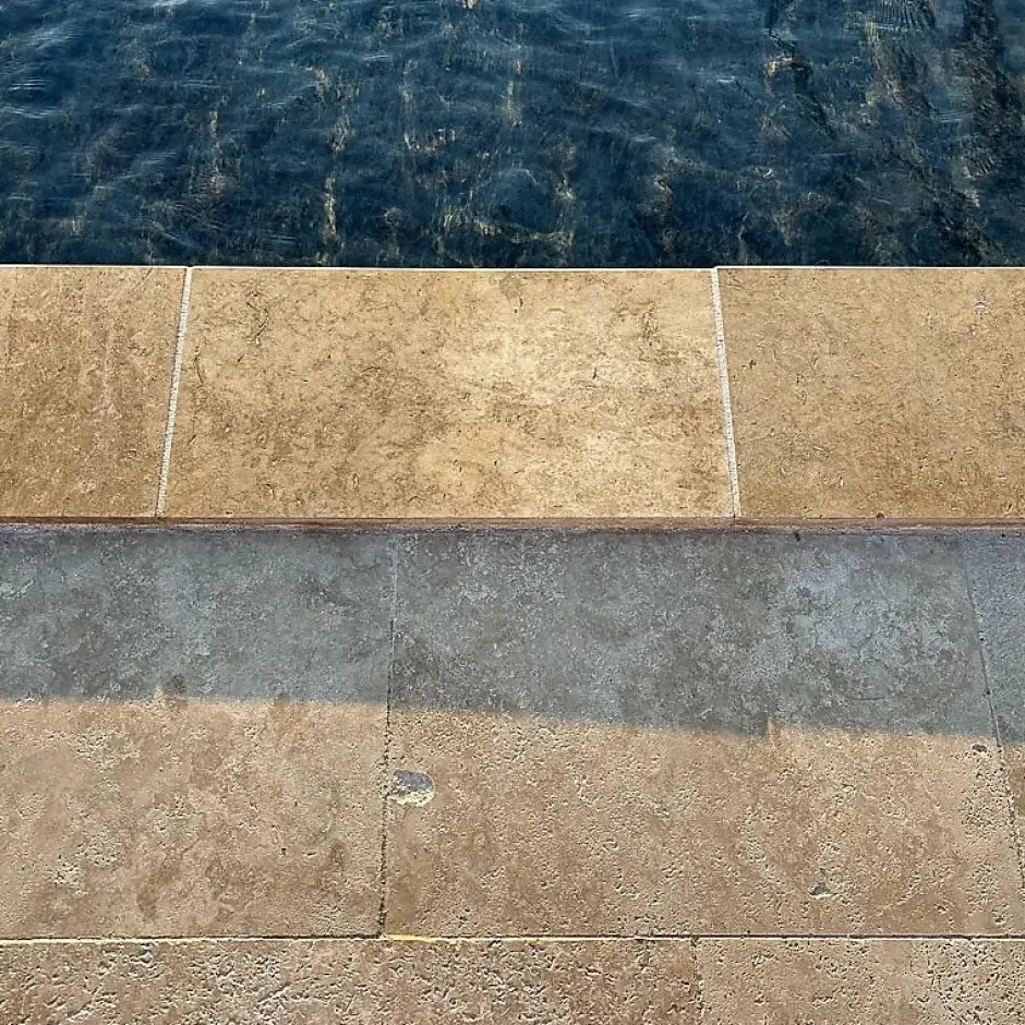Apportez une finition élégante et intemporelle à votre piscine avec cette margelle en travertin mix 61 x 33 x 3 cm à bord droit vieilli. Fabriquée en pierre naturelle, elle séduit par ses nuances beiges nuancées de gris et d’ocre, offrant un rendu authentique et chaleureux. Son aspect vieilli adoucit les lignes du bassin et s’intègre harmonieusement dans tous les aménagements extérieurs, contemporains comme traditionnels.Cette margelle en travertin peut présenter des aspérités ou des trous traversants, qui seront rebouchés lors du jointage pour un rendu final homogène et naturel.Livraison effectuée par camion 19 tonnes, équipée d’un hayon et d’un transpalette manuel (déchargement à l’arrière du camion). Prévoir un accès adapté et une zone de réception accessible.Caractéristiques techniques :- Dimensions : 61 x 33 cm-Épaisseur : 3 cm- Finition : Bord droit vieilli- Matière : Travertin mix (pierre naturelle calcaire)- Teinte dominante : Beige avec variations naturelles- Origine : Turquie- Résistance : Résistant au gel- Usage : Extérieur – Margelle de piscine, contour de spa, escaliers extérieursVente : À la pièceLe travertin mix est reconnu pour sa robustesse, sa bonne résistance aux intempéries et son esthétique naturellement texturée.La pose s’effectue sur une surface propre et stable à l’aide d’un mortier-colle adapté à la pierre naturelle. Vérifiez systématiquement l’horizontalité avec un niveau à bulle. Prévoir un joint régulier entre chaque élément. Les aspérités peuvent être rebouchées au moment du jointage.Nettoyez immédiatement les résidus de mortier après pose.Prévoir une marge de découpe d’environ 10 %.Afin de protéger durablement la pierre contre les taches et l’humidité, il est recommandé d’appliquer un imperméabilisant spécial travertin après la pose.