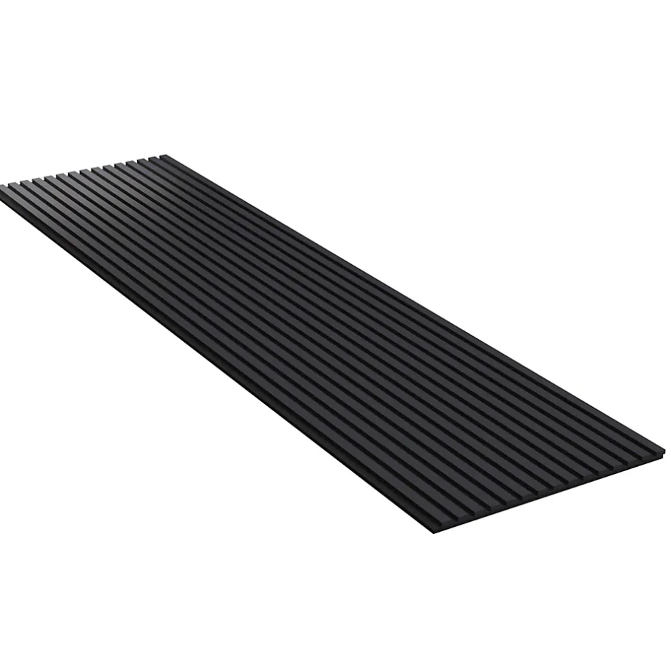 Son revêtement noir élégant apporte une touche contemporaine et sophistiquée tout en absorbant efficacement les nuisances sonores. La combinaison des lattes noires en MDF et du feutre acoustique crée une atmosphère moderne tout en améliorant le confort phonique de la pièce. Sa finition noire profonde met en valeur la décoration intérieure et réduit les échos pour une meilleure qualité sonore. Le contraste du noir avec des murs clairs offre un design haut de gamme et améliore l’acoustique de l’espace. Facile à poser grâce à son format standard, le panneau transforme vos murs en un habillage noir chic tout en réduisant la réverbération. Conçu avec des matériaux robustes et durables, il assure une isolation phonique efficace tout en ajoutant une touche moderne. Son design noir sobre et élégant s’intègre parfaitement dans les intérieurs contemporains tout en rendant la pièce plus confortable acoustiquement. La couleur noire absorbe non seulement le son mais aussi la lumière, créant une ambiance intime et chaleureuse. L’association du noir et du feutre acoustique apporte une double fonction : décoration murale raffinée et amélioration acoustique. Grâce à son style noir intemporel, il s’adapte aussi bien aux espaces professionnels qu’aux intérieurs modernes tout en optimisant l’acoustique.