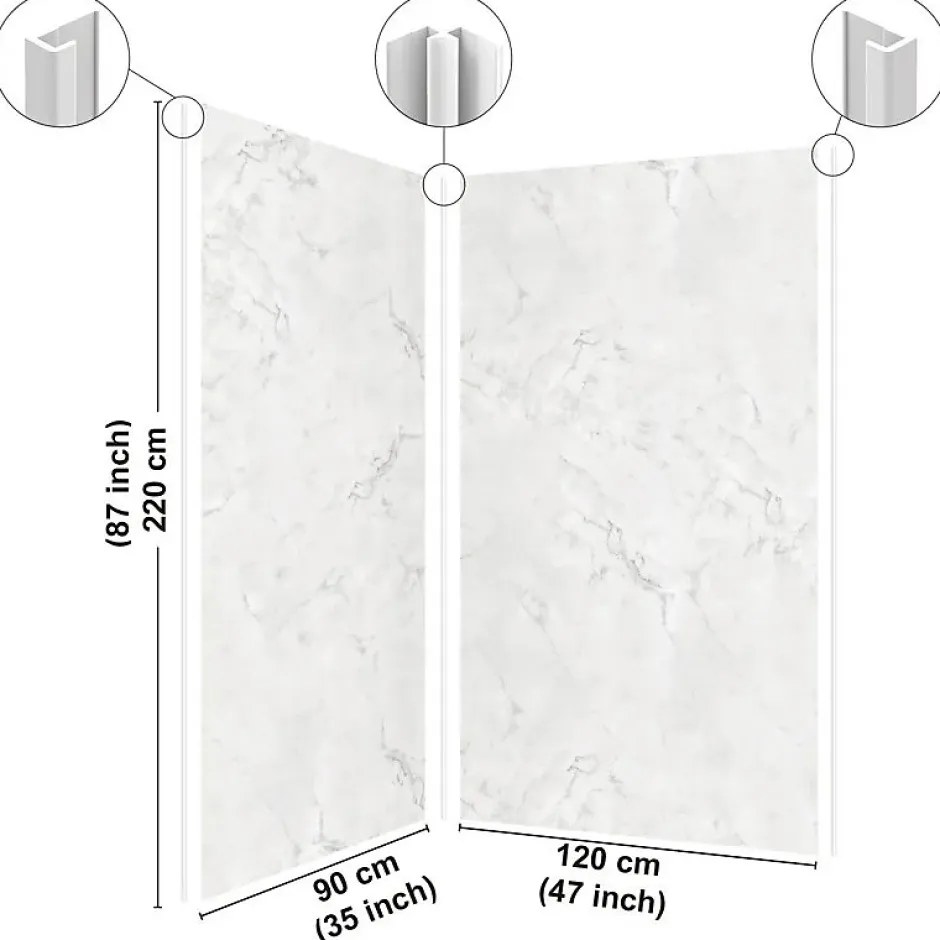 Panneaux muraux de douche en PVC premium de 3 mm et profilés – Faciles à poser et à nettoyer (Fabrication française) Protégez et modernisez votre salle de bain avec ce pack de panneaux muraux, résistants, élégants et prêts à poser. Alternative contemporaine à la faïence murale, ces panneaux en PVC de 3 mm offrent une solution rapide, pratique et durable pour habiller vos murs de douche. Leur finition apporte un rendu premium tout en facilitant l’entretien au quotidien. Points forts : Pack complet : 2 panneaux (90×220 cm et 120×220 cm) + 3 profilés (2 profilés de finition et 1 profilé d’angle). Pose rapide : installation rapide pour un résultat propre et durable. Découpe facile : une découpe à la scie cloche est conseillée pour l’installation de la robinetterie. Raccordables : panneaux raccordables à droite ou à gauche selon la configuration de votre douche. Supports compatibles : Placo, carrelage existant, faience, toile de verre, bois, béton. Conception française : Dessiné dans notre studio graphique et fabriqué dans notre atelier à Agen (47 – France) Caractéristiques : Couleur des panneaux : blanc Couleur des profilés : blancDimensions des panneaux : 90×220 cm et 120×220 cm Matériau : PVC qualité premiumÉpaisseur : 3 mm Entretien : compatible raclette silicone, micro-fibre, éponge douce et eau chaude (pas de produits abrasif) -> si besoin ajouter du vinaigre blanc. Étanchéité : Joints silicone : appliquez un joint silicone entre les panneaux, le receveur et les profilés. Une solution élégante, durable et simple à installer pour transformer votre espace douche.