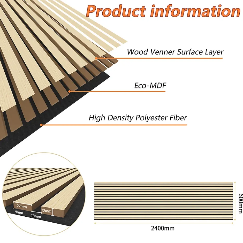 - ●Qualité sonore exceptionnelle : L’association de feutre acoustique haute densité et de lamelles de bois assure une absorption optimale du son et réduit efficacement les nuisances sonores.