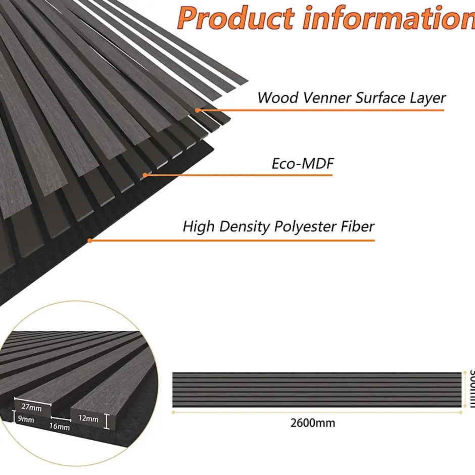 Lot de 2 Panneaux Muraux Décoratifs Acoustiques Bois MDF 260x30cm Chêne grisé AntiBruit, Facile à Poser-AICA Sanitaire Clearance