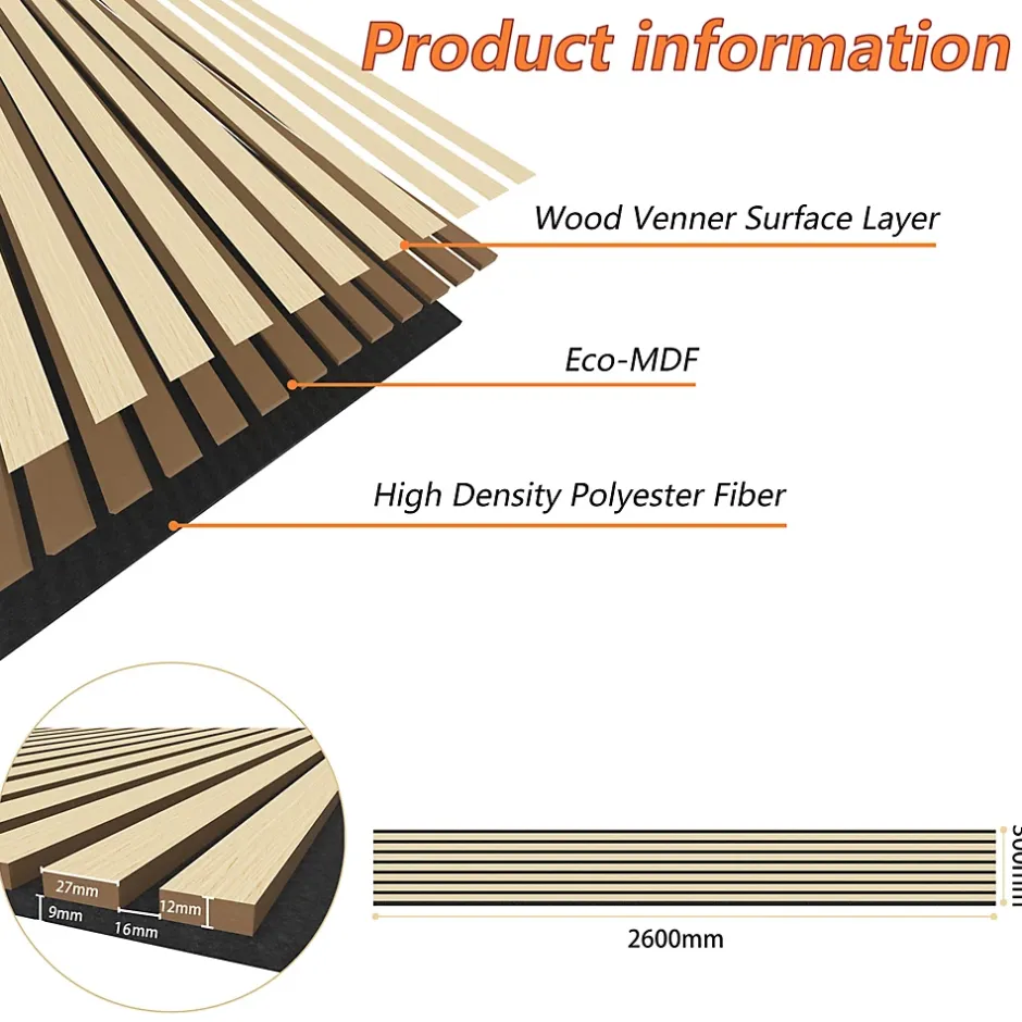 Lot de 2 Panneaux Muraux Décoratifs Acoustiques Bois MDF 260x30cm chêne naturel AntiBruit, Facile à Poser-AICA Sanitaire Online