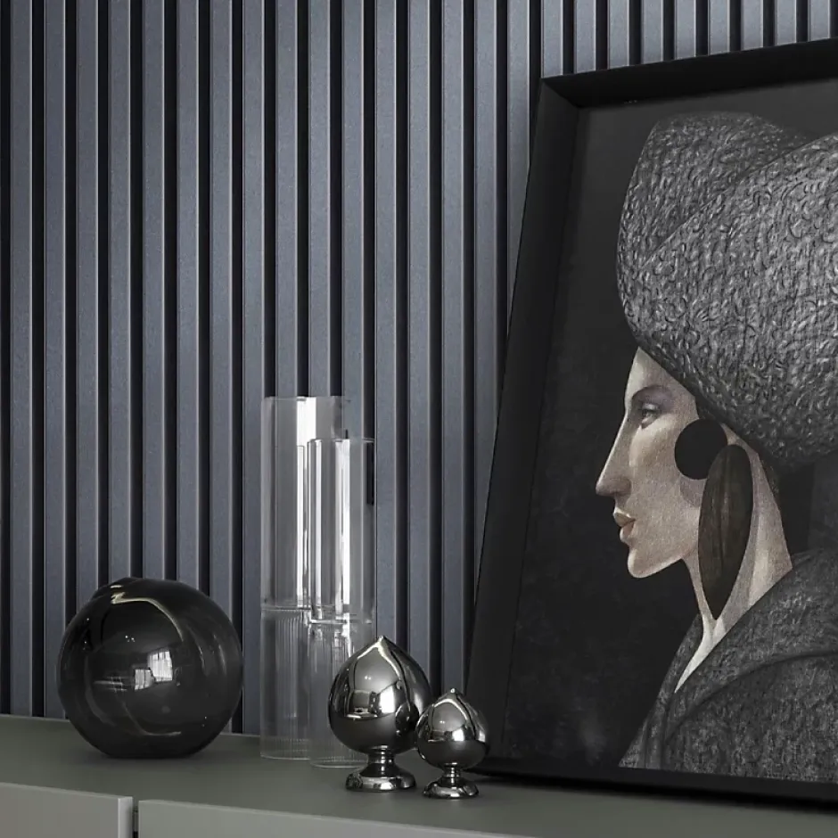 Osez une décoration unique avec nos panneaux tasseaux alu !Un design métallique raffiné pour une ambiance lumineuseModerne et ultra tendance, ils incarnent raffinement et chic à merveille. Laissez-vous transporter par ses reflets argentés et son aspect métallique pour des ambiances lumineuses incomparables, tant en hiver qu’en été. Le contraste des couleurs et des matières est pensé pour un design contemporain et chic.Un mariage parfait entre tasseaux MDF irisés et feutrine acoustiqueUn mariage unique entre un tasseau de MDF revêtu d’un décor argenté et une couche de 8 mm de feutrine pour un rendu élégant et sublime sous tous les angles. Par ailleurs, la feutrine est un matériau résistant qui apporte confort et peut contribuer à une isolation phonique subtile.Un revêtement mural aussi esthétique que pratiqueMalléable, elle calfeutre les espaces pour évoquer la chaleur et peut s’avérer un allié sur les murs sensibles aux variations thermiques. Ce format 250 centimètres donnera de la hauteur à vos murs et agrandira visuellement vos pièces avec élégance.Une pose facile pour un rendu impeccableNos panneaux tasseau sont très simple à poser et garantissent un résultat parfait, même sur un mur endommagé. Rattraper les défauts et aspérités n’a jamais été aussi rapide ! Facile à découper, il s’adapte à toutes les pièces de vie et à toutes les dimensions.