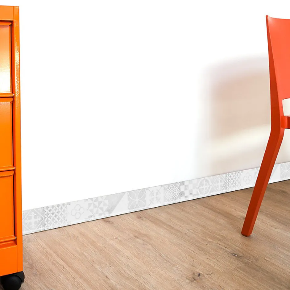 Plinthe en PVC recyclé. Disponible en 1 mètre par lot de 10 ou en 2 mètres par lot de 25.Multi-surfaces : Sol Stratifié, Parquet, Carrelage, Vinyle.Prête à poser : bandes adhésives en polyoléfine de marque TESA préinstallées au dos.Vernis de protection sur le décor.Semi-rigide.Classement au feu M1 (ininflammable). A coller sur votre mur en placoplatre, peinture, toile de verre, ou même vos plinthes existantes, le support doit être propre et dépoussiéré.Fabriqué en France.
