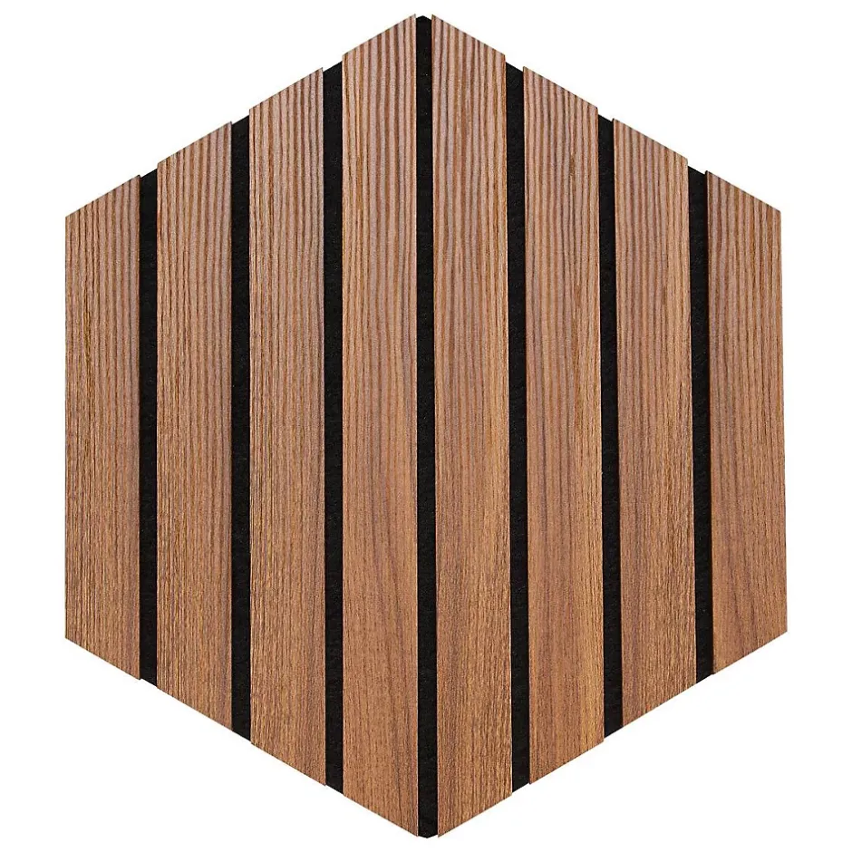 Informations Techniques :Dimensions : L. 26 x l. 2,1 x H. 30 cmMatières : MDF & PolyesterSpécificités :Pratique & Déco Lot de 3 panneaux décoratifs muraux Isolation acoustique Tasseaux réguliersDoublage en feutrine noirForme hexagonaleEffet noyer Facilement découpable Installation simpleA fixer avec une colle polymère ou des visUsage intérieur uniquementNe convient pas pour les pièces humidesPoids : 0,53 kgCouleur : Marron & Noir