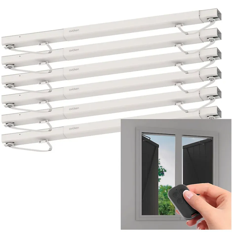 Lot de 6 pour automatiser 6 fenêtresComposition du pack :6 motorisations pour volet battant Avidsen Open W (ref 114600)6 télécommandes déjà inclussent dans le carton de la motorisation.Ce kit permettra de motoriser les volets de 6 fenêtres, quelles soient à simple ou double volet. Améliorez votre routine quotidienneIntégrez la motorisation pour volets battants Open-W d’Avidsen à votre routine ! Afin de vous faire gagner du temps et d’éviter une manipulation parfois difficile, gérez vos volets avec la télécommande incluse, dans n’importe quelle pièce. Une solution adaptable pour le plus grand nombreL’Open-W s’installe sur tous les types de volets à battants, un seul à droite ou à gauche de la fenêtre, ou les deux et à toutes les matières : bois, PVC, aluminium…Le poids maximum recommandé est de 30kg par battant. Pour les volets à 2 battants la largeur de la fenêtre doit être comprise entre 79cm et 140cm et jusque 100cm pour un battant seul.Contrôlez votre motorisation avec une télécommandeL’Open-W est fournie avec une télécommande, vous pouvez donc contrôler l’ouverture et la fermeture de vos volets n’importe où depuis chez vous. Ne la perdez pas grâce à son support inclus pour la ranger.Centralisez plusieurs volets sur la même télécommande et gagnez du temps. Il vous est p