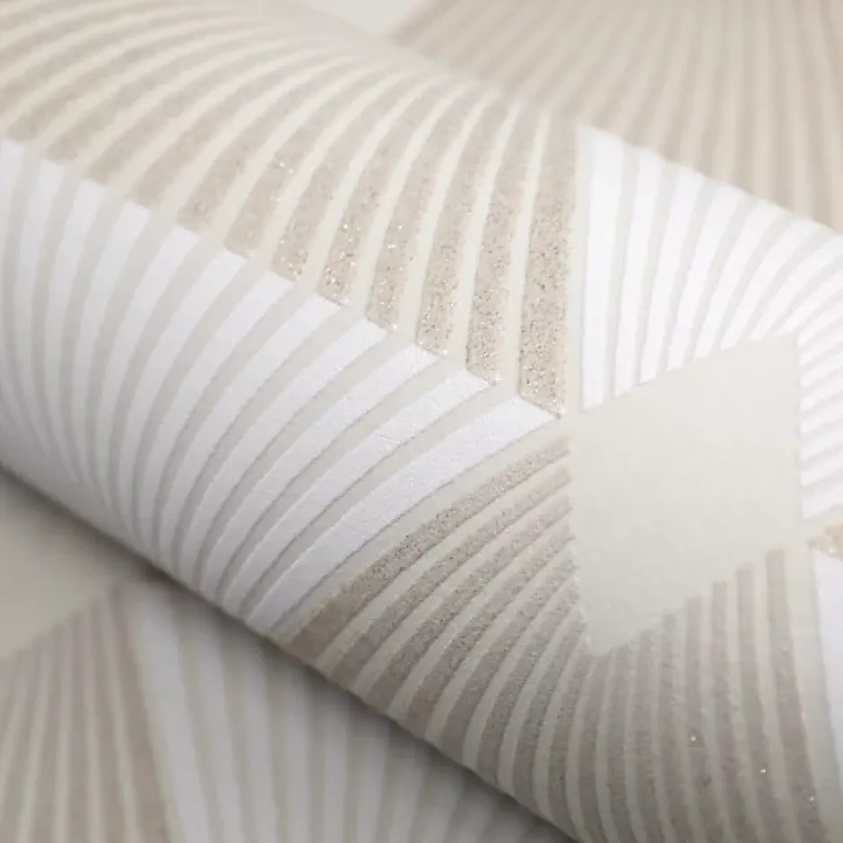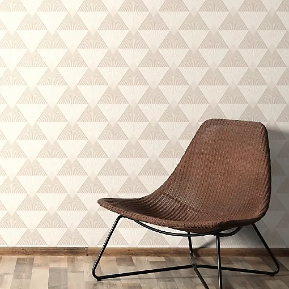 Ce modèle de la collection Les Essentiels est un papier peint expansé sur intissé (170 grammes/m2) de style motifs géométrique|3d|paillettes|art déco|graphique. Il est lessivable, strippable et bénéficie d’une bonne résistance à la lumière. Ses couleurs dominantes sont les beiges. Caractéristiques techniques : Dimensions : 53 centimètres x 10,05 mètres Raccord : 16 centimètres (Raccord droit) Intissé : pose facile, encollage du mur Type de matière : Papier peint expansé sur intissé Grammage : 170 grammes/m2 Entretien : Lessivable Dépose : Strippable Résistance à la lumière : Bonne résistance Couleurs : Les beiges Styles : Motifs