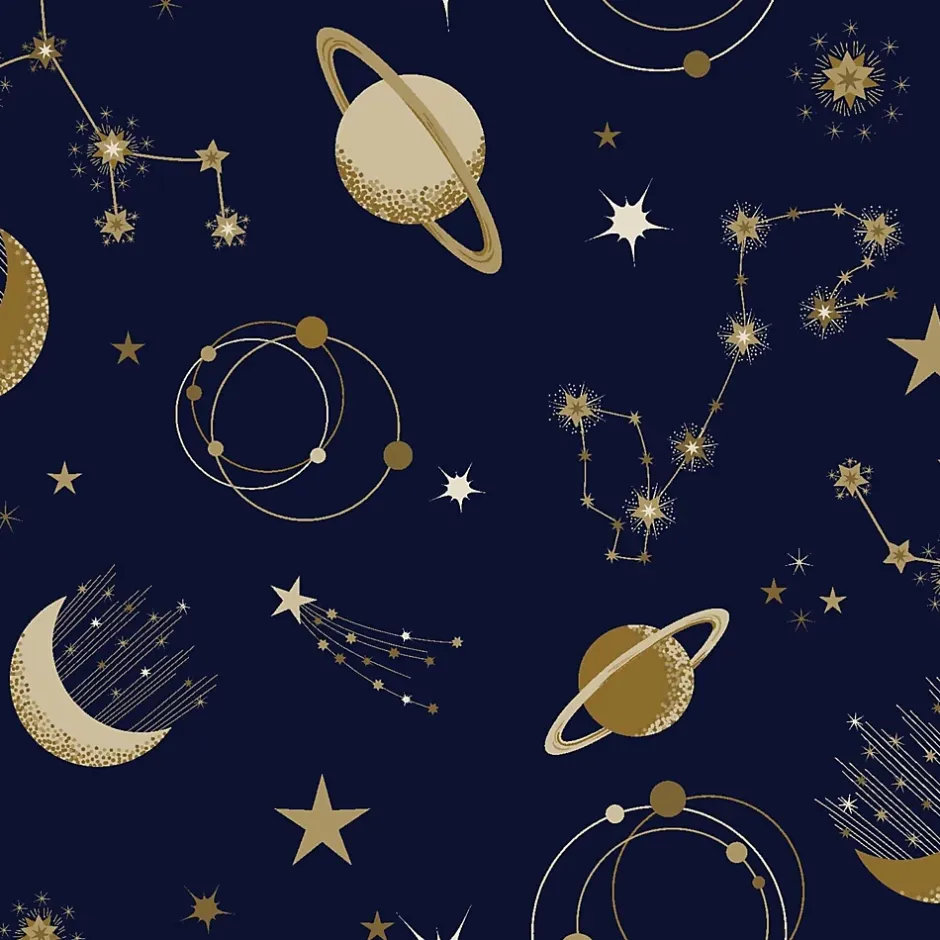 Papier peint intissé Les aventures astre doré, bleu marine L.1005 x l.53cm Lutèce